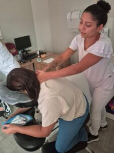 No dia 7, oferecemos sessões de Quick Massage. para os acompanhantes enquanto os pacientes eram atendidos na clínica especializada. Foi um momento de cuidado dedicado a quem também cuida.