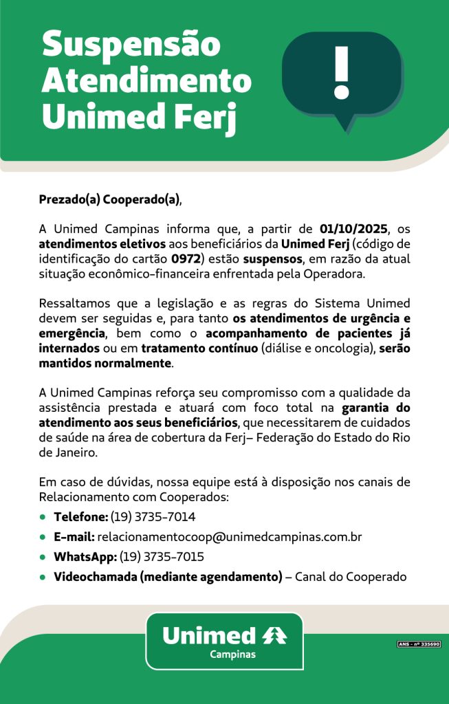 Comunicação CompartilhadaSuspensão Atendimento Unimed Ferj